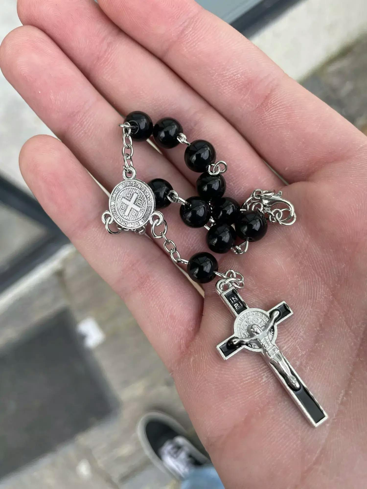 Enhance your spiritual practice with this Exquisite Rosary Cross Bracelet β crafted with elegant black glass beads and a meaningful rosary cross, a must-have item for Catholicism prayer and devotion.
