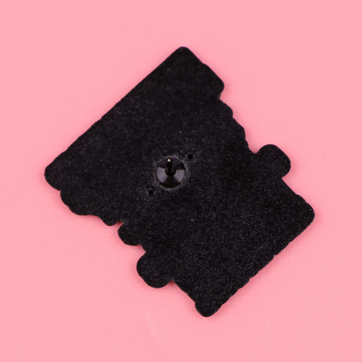 Durable metal alloy with colorful hard enamel and a secure pin-back closure.