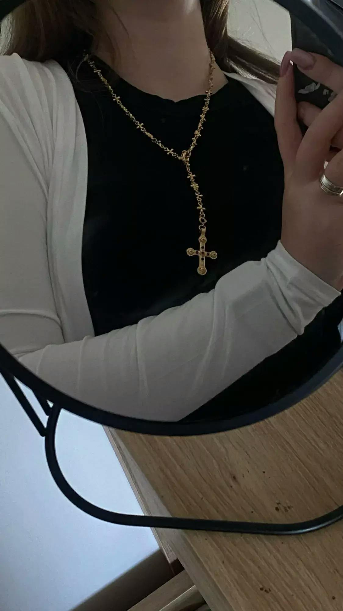 Elevate your style with the KunJoe Vintage Jesus Cross Pendant Long Necklace. Featuring a creative gold-colored collar chain, this Y2K-inspired piece is perfect for women looking to add a retro yet spiritual touch to parties or daily wear.